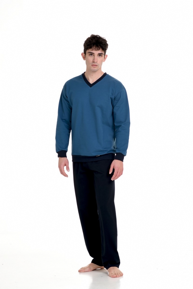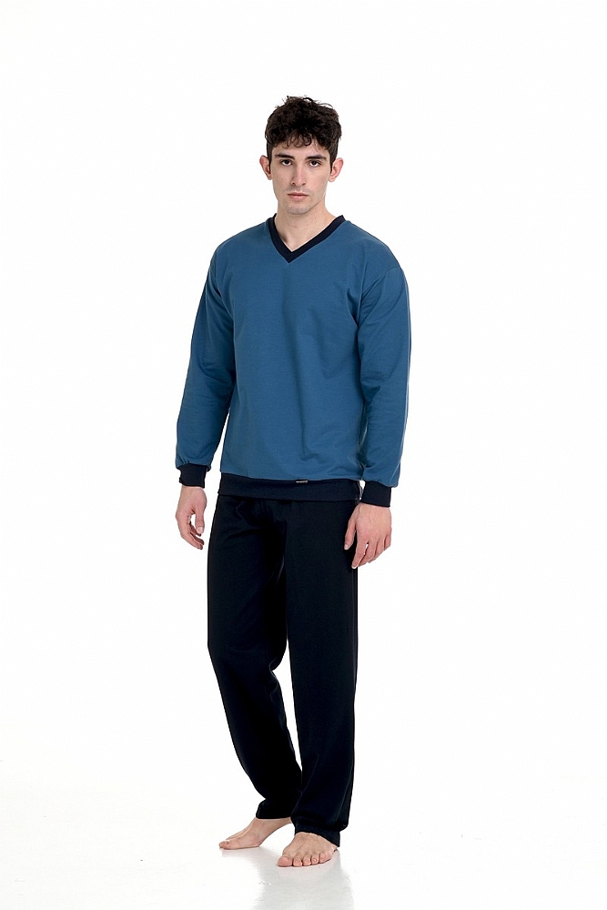 Προσθέστε στη γκαρνταρόμπα σας αυτές τις ανδρικές χειμερινές πυτζάμες ,που προσφέρουν άνεση. Αποτελείται από μονόχρωμο τοπ με διακριτική V λαιμόκοψη και μακριά μανίκια . Το σετ συμπληρώνει ένα παντελόνι μονόχρωμο.Μια ιδανική επιλογή για τις στιγμές χαλάρωσης σας.