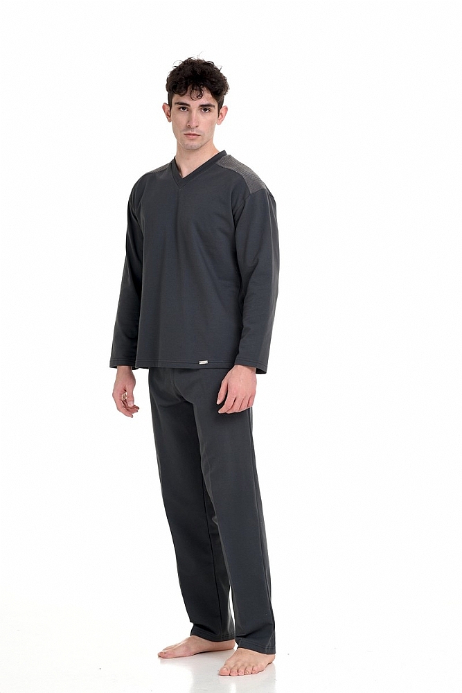 Ανακαλύψτε το ιδανικό σύνολο για το χειμώνα,προσφέρει απαλή αίσθηση, ιδανική για τις κρύες νύχτες. Το πάνω μέρος έχει V και διακριτικές λεπτομέρειες από πλεκτό ύφασμα .Το παντελόνι έχει ίσια γραμμή προσθέτοντας μια κλασική νότα στο σύνολο. Απολαύστε κάθε στιγμή στο σπίτι με άνεση .