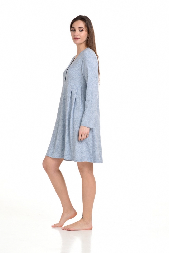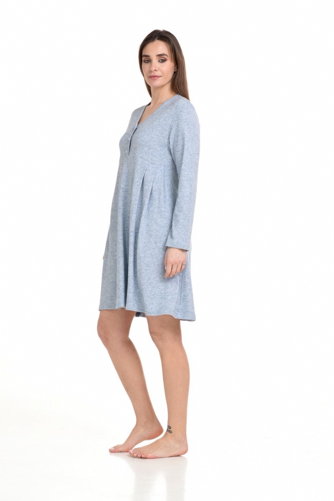 Χειμερινό νυχτικό που συνδυάζει άνεση και λιτότητα.Είναι σχεδιασμένο με μακριά μανίκια και ιδιαίτερο σχεδιασμό στο μπροστινό μέρος του ρούχου. Προσθέστε στη συλλογή σας ένα νυχτικό, που προσφέρει ζεστή αίσθηση στο σώμα λόγω του υφάσματος.Διαθέτει πατιλέτα στο στήθος και όμορφες πιέτες στα πλαινά του ρούχου. Ένα νυχτικό σχεδιασμένο για να δώσει μια ξεχωριστή αίσθηση κατά τη διάρκεια της ημέρας και της νύχτας.