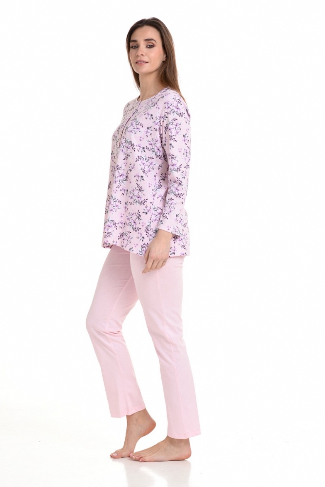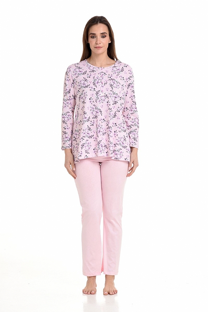 επάνω μέρος είναι σχεδιασμένο με πατιλέτα και είναι διακοσμημένο με υπέροχο χειμερινό φλοράλ εμπριμέ , ενώ το μονόχρωμο παντελόνι