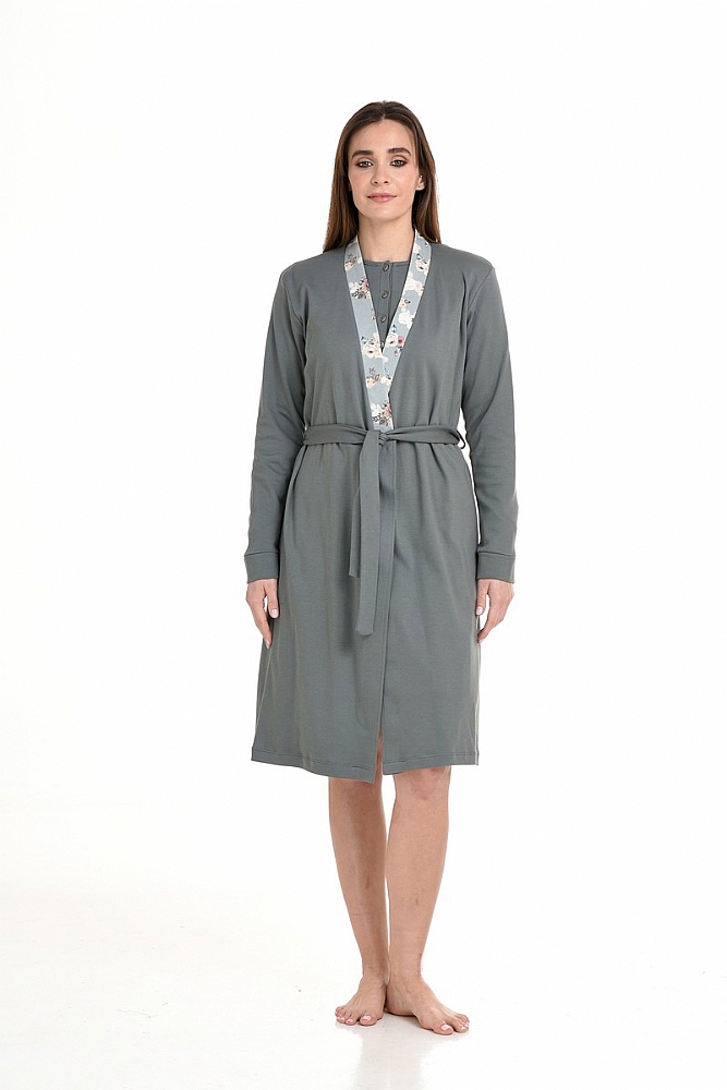 Συνοδέψτε το αγαπημένο σας νυχτικό ή πυτζάμα με μια σταυρωτή ρόμπα από ύφασμα ιντερλοκ που προσφέρει αίσθηση χαλάρωσης.