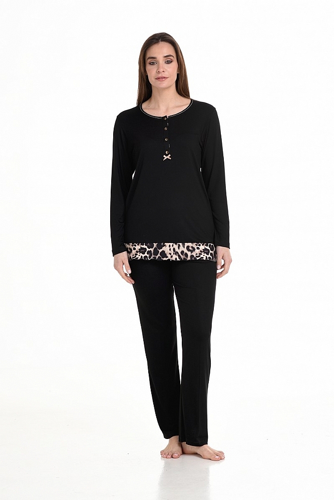 πυτζάμα.Το σετ αποτελείται από μαύρο χρώμα μπλούζα και παντελόνι σε συνδυασμό με animal print λεπτομέρειες.