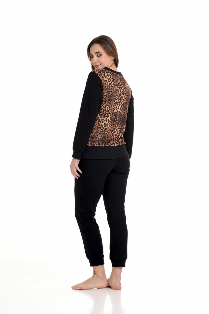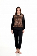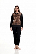 προσφέρει άνεση.Το σετ περιλαμβάνει παντελόνι με μανσέτες από λάστιχο . Animal print που προσφέρει μια elegant πινελιά . Το πάνω μέρος έχει μακρύ